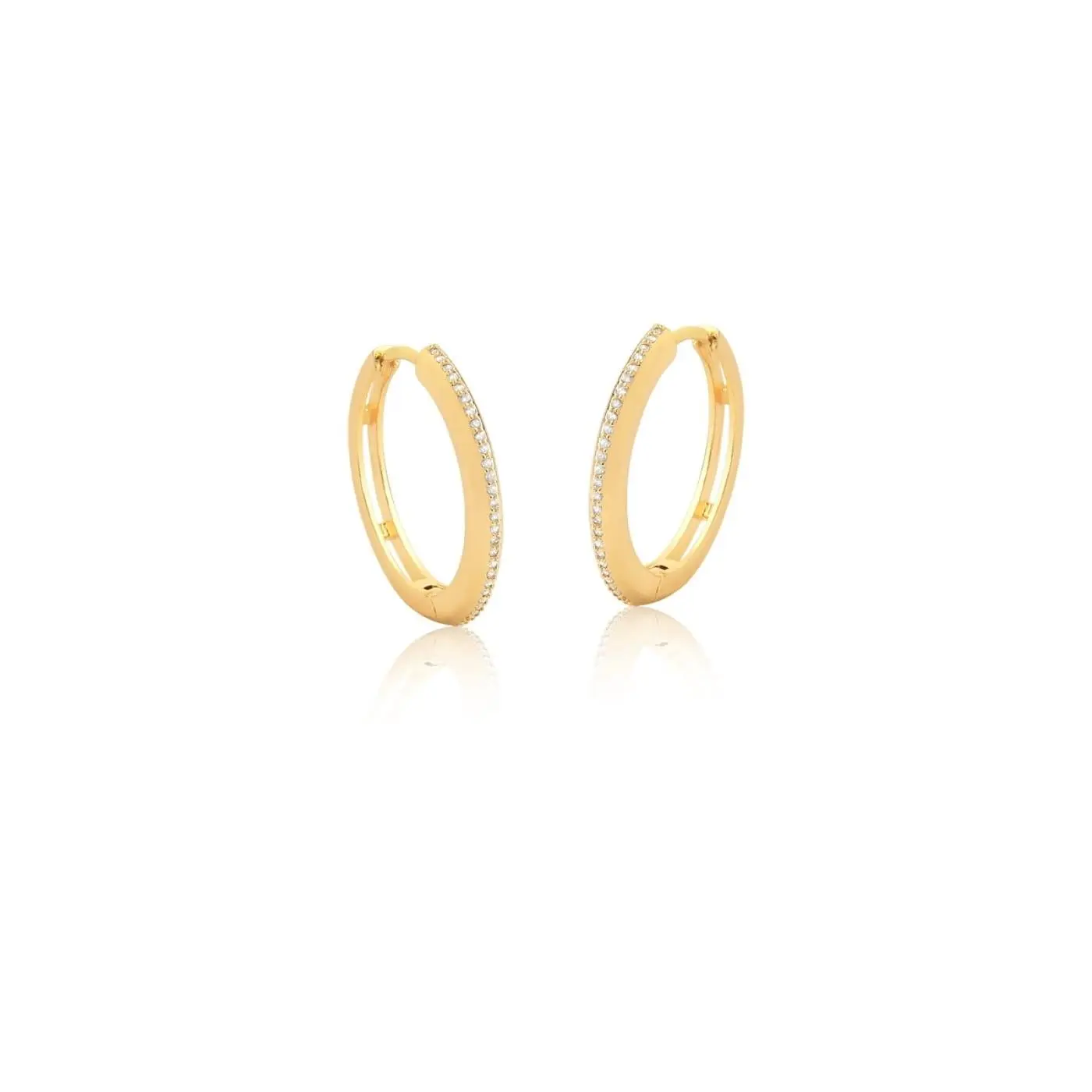 Argola banhada a ouro uma fileira cravejada com zircônias brancas, essa argola além de maravilhosa é perfeita para compor um mix na orelha aposte nela e arrase.