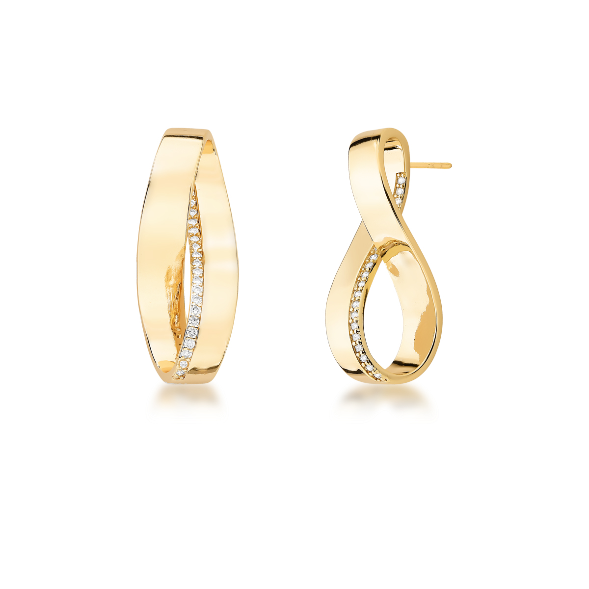 BRINCO CURVO LISO E CRAVEJADO BANHADO A OURO