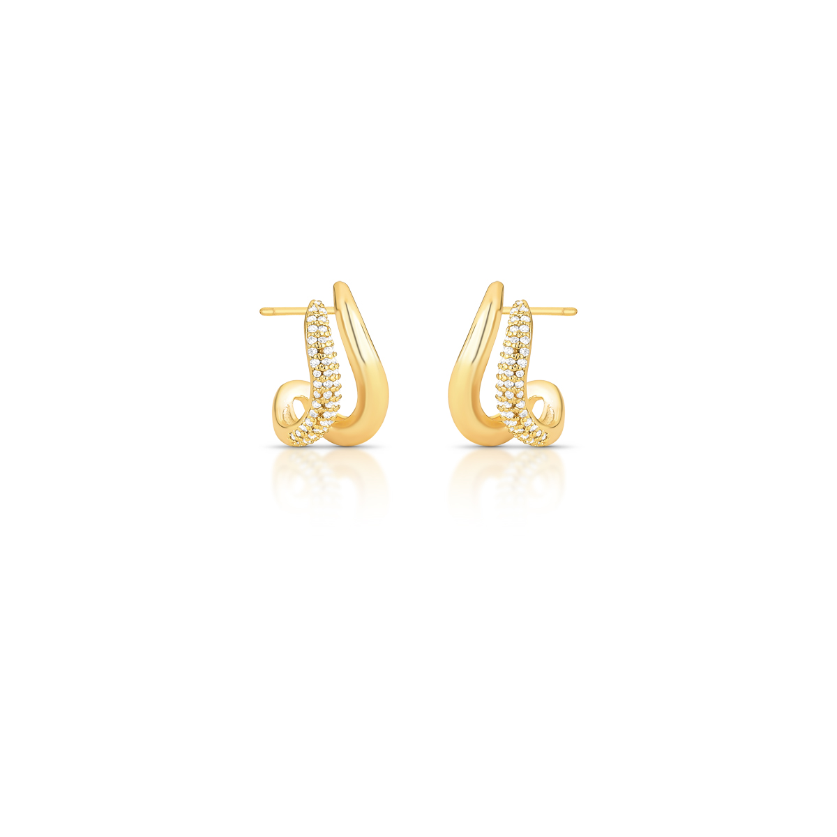 Brinco médio zirconia 2 colunas banhado a ouro.